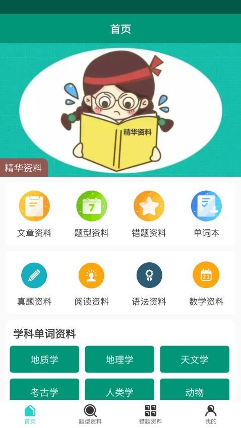 1、首先在软件中选择教材类型,找到想要的学习资料;软件采用智能分类系统,根据用户的学习进度和考试类型自动推荐最适合的资料,节省搜索时间。