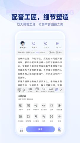 -提供12大调音工具,包括降噪、均衡、混响等专业功能,帮助用户打磨声音的细微之美。通过精确的参数调整,使配音更加专业、精细,完美匹配视频节奏和情感表达,打造影院级的听觉体验。