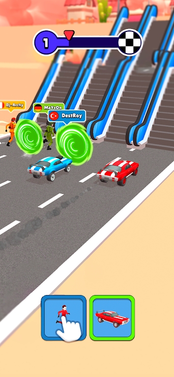 2、动态变化的关卡环境设计极具创意,赛道会随着游戏进程不断改变形态,玩家需要快速反应和灵活操作以避免掉落陷阱或撞上障碍;