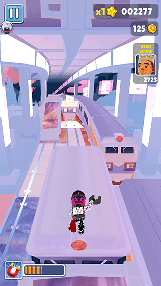这个版本对游戏内的场景进行了全面升级,将其改成了更精美的紫色场景,同时将金币的外观也变成了紫色的生化标志。全新的紫色主题不仅视觉效果更加炫酷,还营造出独特的未来科技感。游戏的玩法在保持简单易上手的基础上,增加了更多创新元素。玩家需要灵活控制角色在地铁隧道中奔跑,不仅要躲避各种障碍物,如疾驰的列车、突然出现的路障和狭窄的隧道墙壁,还要应对随机出现的特殊挑战。收集金币的机制也进行了优化,现在金币会以更合理的分布出现,让玩家能更流畅地完成收集任务。