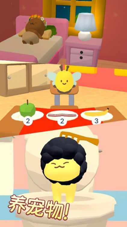 2、深度养成系统包含命名、换装、技能特训等模块,通过mini游戏提升宠物属性,还能解锁特殊互动动作,打造独一无二的专属萌宠;