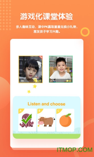 2、创新的游戏化课程设计,包含角色扮演、抢答竞赛等趣味环节,配合实物奖励机制,大幅提升孩子学习积极性