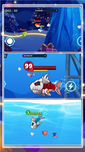2、游戏完美还原了海洋食物链的生存法则,从一条不起眼的小鱼开始,通过不断吞噬其他生物来成长壮大。随着体型变化,玩家可以解锁新的海域和更强大的猎物。游戏巧妙平衡了策略性与趣味性,既需要规划成长路线,又要应对随机出现的挑战。轻松愉快的游戏节奏配合生动可爱的海洋生物造型,带来持续不断的欢乐体验。