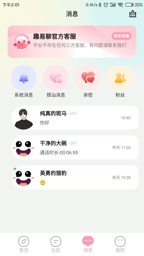 趣易聊app通过创新的社交模式和智能技术,为用户打造了安全、高效、有趣的交友平台。精准的同城匹配、丰富的互动功能和严格的真人认证体系,让线上社交更加真实可靠。无论是拓展人脉还是寻找知己,都能获得满意的体验。持续优化的算法和人性化的设计细节,使这款应用在众多社交软件中脱颖而出,成为现代人社交生活的得力助手。