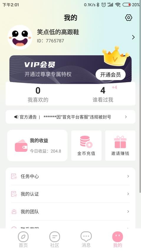 5、在"我的"页面管理个人账户,查看交友数据统计,设置隐私偏好。系统会根据您的使用习惯提供个性化建议,优化社交体验。