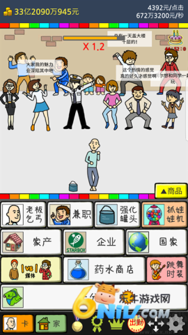 游戏提供了六大创收体系:基础点击操作可获得即时收益;雇佣系统包含20种不同属性的打工者;投资市场涵盖股票、期货等金融产品;企业收购涉及餐饮、制造等八大行业;国家系统可参与政策制定;银行存款会随游戏内经济形势浮动利率。每种方式都配有专属技能树,玩家可以专精发展或多元经营。