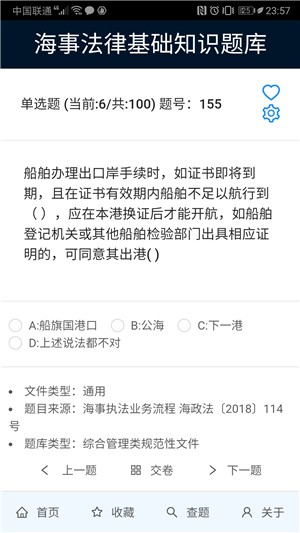 专项学习与测试功能覆盖全面,系统按照海事法律知识体系划分多个学习模块。用户可以根据自身需求选择特定领域进行深度学习,每个模块都配有对应的知识点讲解与配套测试。测试题目类型丰富,包括单选、多选、案例分析等,全方位检验学习成果。