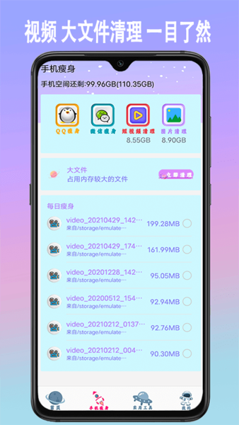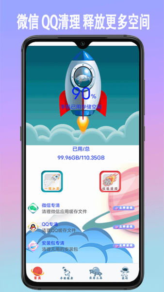 手机垃圾内存清理app是一款专业高效的手机优化工具,它能智能识别并清理各类缓存垃圾、残留文件和无用安装包。通过深度扫描技术,软件可精准定位占用存储空间的冗余数据,同时提供电池降温、网络测速等实用功能。无论是微信聊天记录、相册缓存还是后台进程,都能一键彻底清理,让您的手机运行如新。独特的太空主题界面设计,更带来科技感十足的操作体验,是安卓用户必备的系统维护神器。