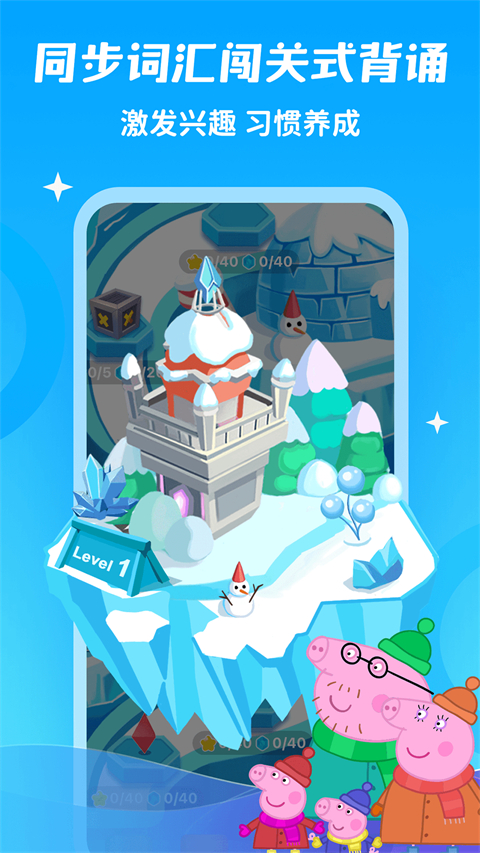 以魔法学院为背景,建立闯关式学习体验,64个关卡从易到难,让孩子在学习的过程中不知不觉提高口语水平。每个关卡设置星级评价,收集足够星星可解锁神秘奖励。关卡内容涵盖语音、词汇、语法等多维训练。