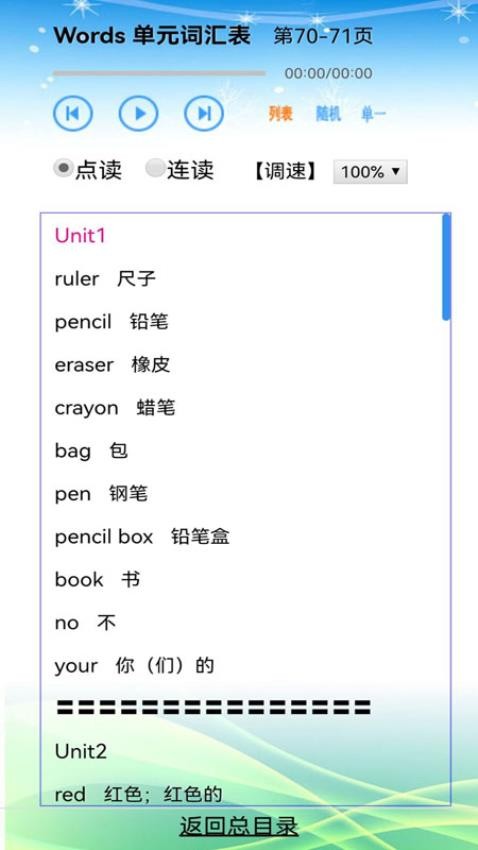 4、学习页面提供点读和连读两种模式,点击相应按钮即可开始跟读练习,系统会自动记录学习进度。