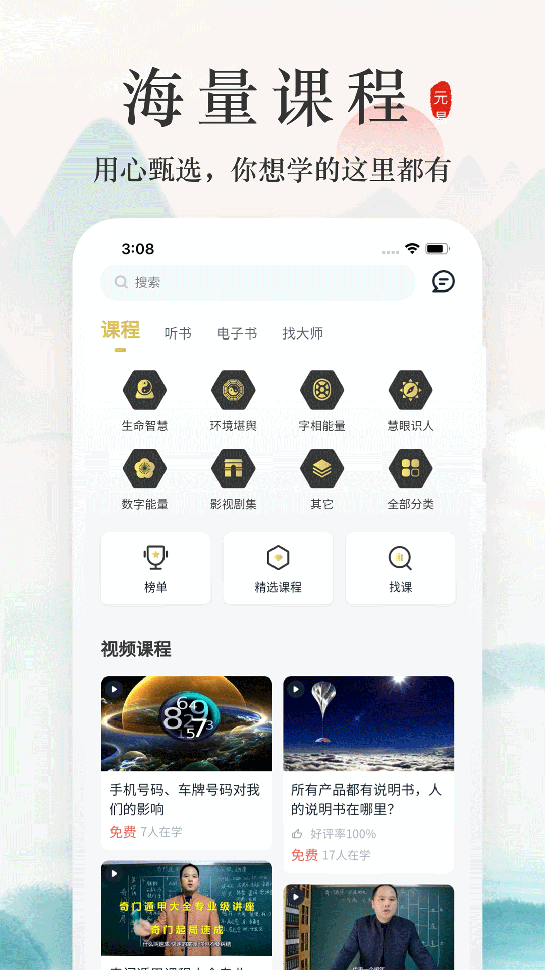 一、【课程】平台提供丰富的直播课程和视频课程,由专业命理师深入浅出地讲解各类命理知识,让学习变得生动有趣。课程内容系统全面,适合不同基础的学员学习。