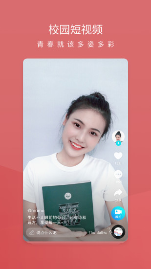 1822校园短视频是国内领先的校园垂直领域内容平台,专注于发掘校园音乐达人和记录青春故事。平台汇聚了全国各大高校的创意人才,通过15-60秒的短视频形式,展现当代大学生的多元风采。在这里,你可以结识周边院校的才艺达人,参与热门校园话题讨论,用镜头定格学生时代的美好回忆。从迎新晚会到毕业季,从课堂趣事到社团活动,1822为你提供专属的青春记录空间,让每一段校园时光都值得珍藏。