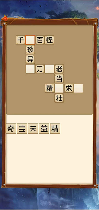1、打开游戏界面玩家可以直接进入关卡里面,然后熬不住玩法的步骤去进行点击选择正确的文字填补出完整的成语。