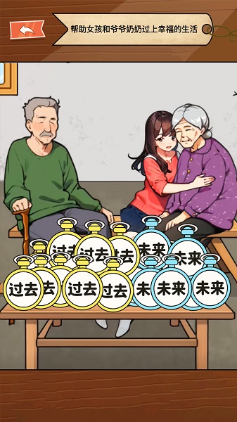 《让时间回到过去》是一款充满创意与温情的休闲手游,它将玩家带入一段跨越时空的奇妙旅程。在游戏中,你将扮演一位拥有时间操控能力的角色,肩负着改变家族命运的重任。通过智慧与策略,你需要在不同年代间穿梭,积累财富、拓展商业版图,最终让爷爷奶奶过上幸福美满的生活。游戏打破了传统闯关模式的局限,以独特的时间解谜为核心玩法,配合精美的画面与动人的音乐,为玩家打造了一个既富有挑战性又充满温情的虚拟世界。无论是场景设计还是剧情编排,都展现了开发者对细节的极致追求。