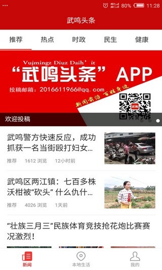 武鸣app是一款专为武鸣地区用户打造的综合性资讯服务平台,汇聚了当地最新鲜、最全面的新闻资讯。无论是本地民生动态、政务公告还是娱乐八卦,用户都能通过图文、视频、直播等多种形式轻松获取。平台不仅提供丰富的资讯内容,还整合了多项便民政务服务,让用户足不出户即可办理各类业务,真正实现"一机在手,万事无忧"。简洁直观的界面设计配合智能推荐算法,确保每位用户都能获得个性化的资讯体验。