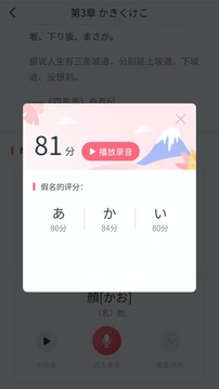 1、新增单词评测中显示假名的具体分数,帮助纠音练习。通过详细的发音评分,用户可以精准了解发音问题所在,有针对性地进行改进。