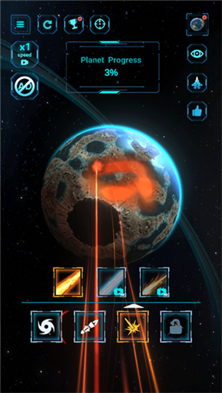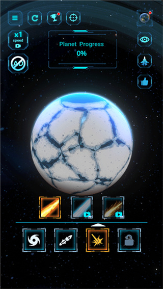 游戏将玩家置于浩瀚的宇宙空间站中,通过全息控制台操作各种毁灭性武器。玩家需要根据行星的类型选择最佳攻击策略,比如对固态行星使用钻地炸弹,对气态行星则适合使用离子扩散炮。随着游戏进程,会解锁更多特殊武器和增益道具,比如能引发连锁反应的引力坍缩弹。游戏还设置了挑战模式,要求玩家在限定时间内完成特定破坏任务,考验玩家的策略和反应能力。