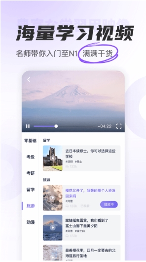 3. 大量的趣味视频内容,感受更加轻松的学习方式,从观看视频的过程中汲取更多专业知识。视频库包含动漫片段、日剧对白、新闻报道等真实语料,配有逐句解析和跟读练习。用户可以根据自己的兴趣选择学习内容,让语言学习变成一种享受。