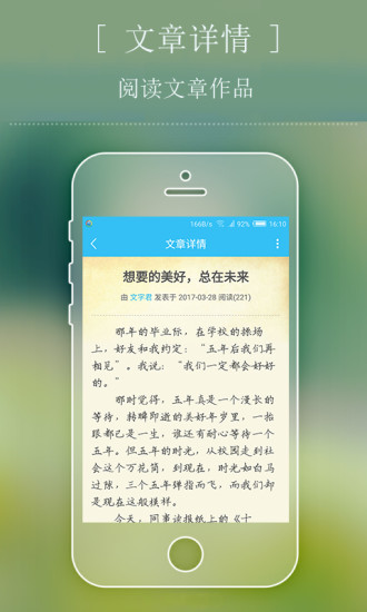 文字站作为一款专业的文学交流平台,拥有海量优质文学资源。平台精选了各类经典文章、唯美句子和散文随笔,满足不同用户的阅读需求。在这里,您可以随时发表原创文章、分享优美句子、记录生活感悟,还能撰写私密日记。我们特别注重用户体验,采用简约清爽的界面设计,每个功能细节都经过精心打磨。无论是阅读还是创作,都能获得流畅舒适的操作体验。文字站致力于打造一个纯粹、安静的文学交流空间,让每位文字爱好者都能找到归属感。