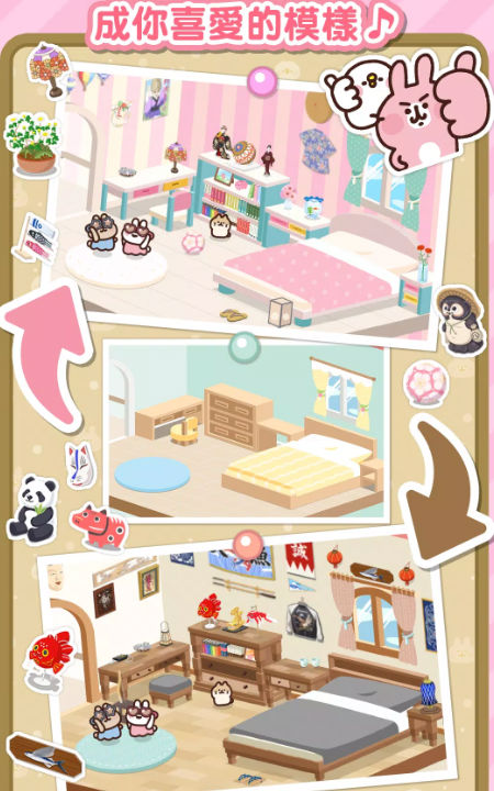 游戏提供超过100种装饰元素,玩家可以自由搭配伴手礼和家具,打造独具特色的梦幻房间。收集特定组合的伴手礼还能解锁隐藏装饰品。随着收集进度提升,玩家可以解锁更多高级装饰选项,让房间布置更具创意和个性。