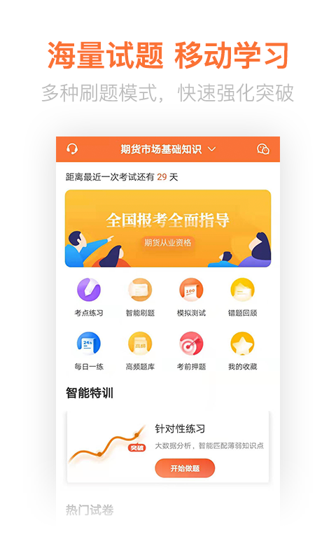 从业亿APP是一款专为期货从业考生打造的高效备考软件,集海量学习资源与智能功能于一体。软件涵盖期货行业核心知识点、精选习题库及高清视频解析,帮助用户系统化掌握考试要点。无论是零基础入门还是考前冲刺,都能通过章节练习、模拟考试、错题强化等功能实现针对性提升。其智能评估系统可实时追踪学习进度,让备考过程更加科学高效。随时随地移动学习的特性,让考生充分利用碎片时间,轻松应对期货从业资格考试。