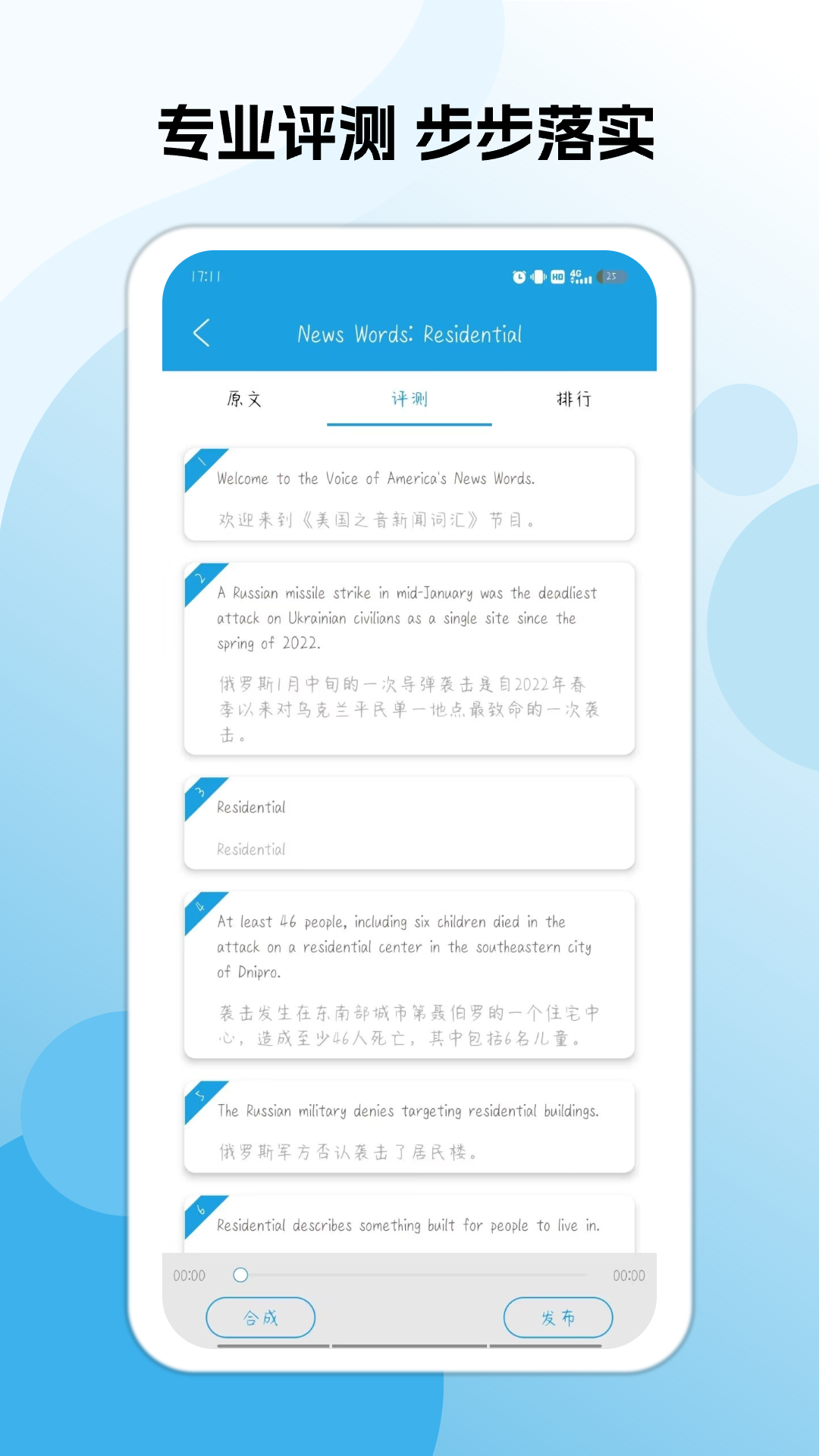 1.中英双语,专业测评:新增了更精准的发音评分算法,优化了用户体验。现在系统可以更准确地识别用户的发音问题,并提供更详细的改进建议。