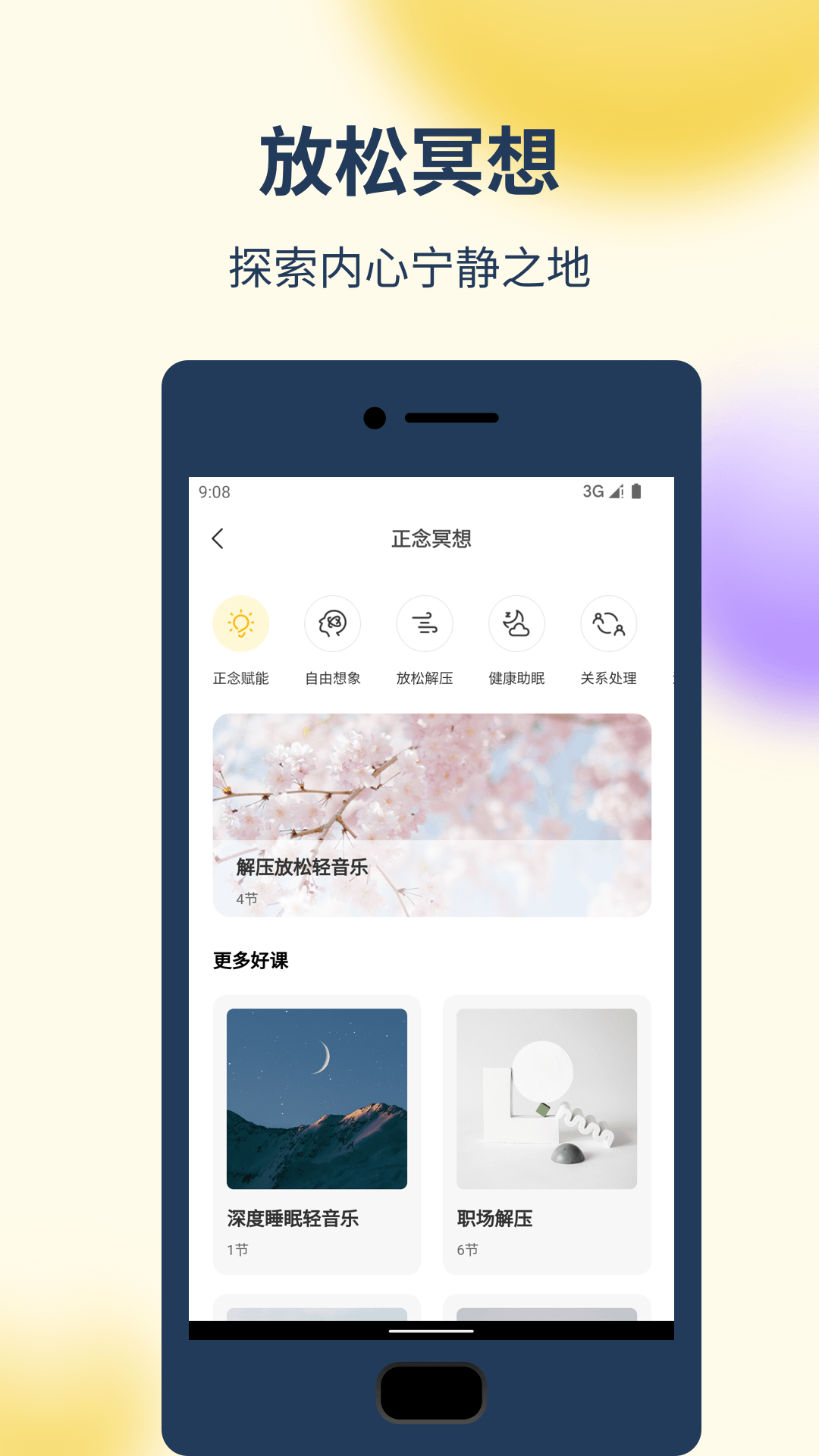 2.正念冥想:新增5个主题冥想课程,包括职场减压、亲子关系调节等,优化冥想计时器功能,增加环境音效选择。