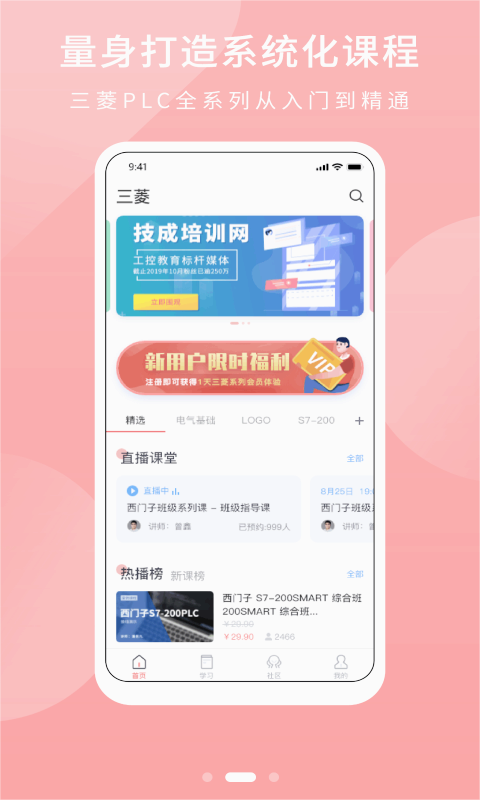 PLC学吧app是一款专注于三菱PLC全系列学习的专业平台,为电气自动化从业者提供全方位的学习支持。该平台整合了电气基础、控制技术、通信控制、指令编程、模拟量控制等核心模块,通过在线学习与实时测试相结合的方式,帮助用户高效掌握工控知识。作为技成培训网旗下产品,PLC学吧凭借12年行业经验,打造了系统化的课程体系和个性化学习方案,让学员能够从零基础快速成长为工控达人。无论是想入门PLC的新手,还是希望提升专业技能的老手,都能在这里找到适合自己的学习路径。