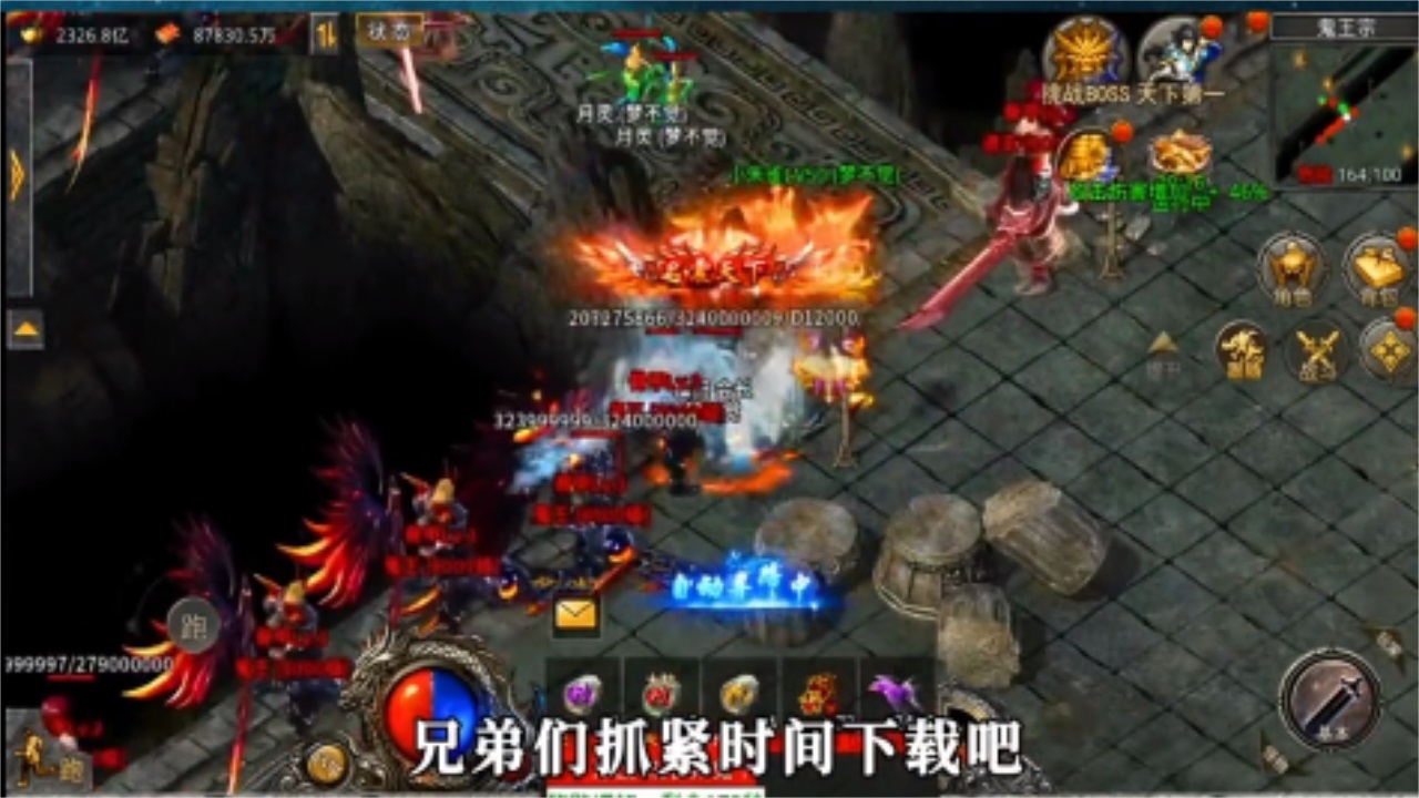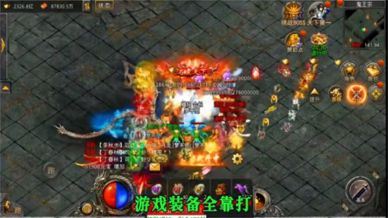 2、团队合作挑战强力boss,爆出的稀有装备价值连城。游戏内置实时兑换系统,可将战利品秒换元宝,通过不断强化提升战力,打造最强角色。