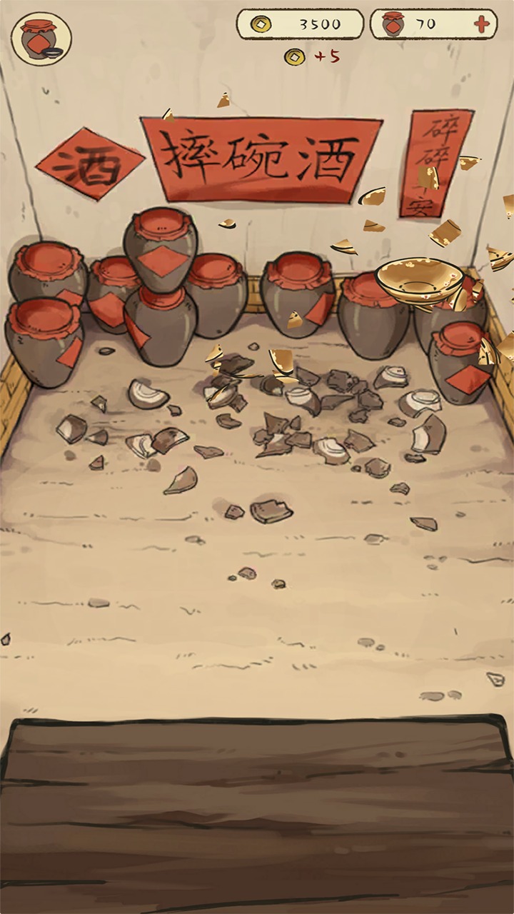 3、超摔碗酒,摔走所有的烦恼,带走你的一切烦恼。游戏内置多种解压模式,包括限时挑战、无限模式等,让玩家可以根据心情选择最适合的玩法。特别设计的音效系统让每次摔碗都充满爽快感。