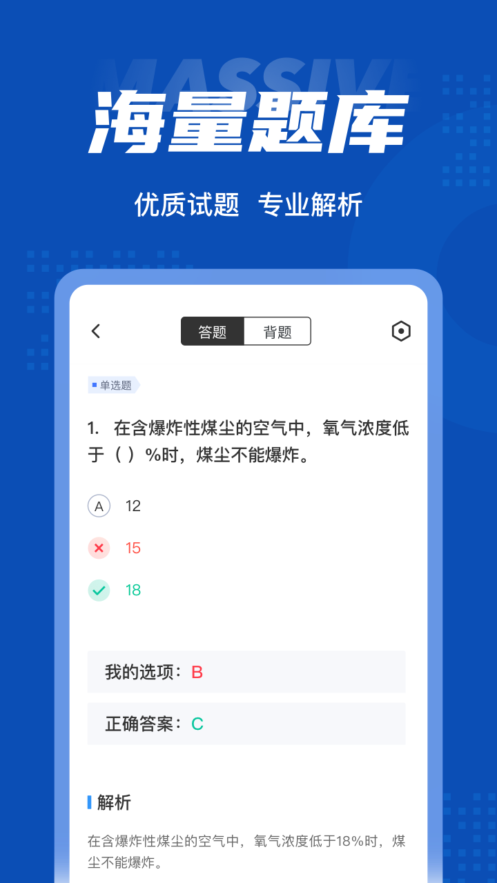 特种作业煤矿安全作业聚题库是一款专业权威的备考工具,全面覆盖特种作业煤矿安全作业考试的所有知识点。题库内容经过专家团队精心整理,包含历年考试真题和高仿真模拟试题,完全模拟真实考试环境。用户可以通过章节练习、错题重做、模拟考试等多种方式进行系统学习。软件还提供详细的解析和考点分析,帮助用户深入理解每个知识点。无论是初学者还是需要提升的考生,都能在这里找到适合自己的学习内容,为顺利通过考试打下坚实基础。
