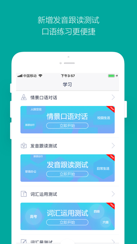 -口语训练营:实时口语打分,全面检验你的口语学习状态。新增情景对话练习模块,模拟真实交流场景提升口语能力。