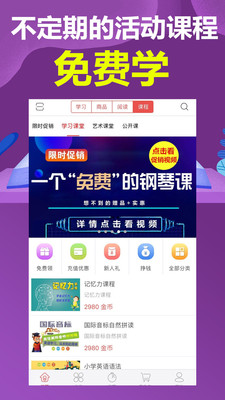 【孩子爱不释手】针对儿童认知特点设计趣味课程,将抽象知识转化为生动故事和互动游戏,每节课都充满惊喜,让孩子在快乐中收获成长。【完整知识体系】严格遵循通识教育标准,构建包含语言表达、科学探索、人文素养、艺术审美、生活常识、思维训练在内的六大课程体系。【课程无限回看】购买课程后可在有效期内无限次观看,重点难点随时复习,学习效果更有保障。【海量学习资源】与上百家知名教育机构和出版社达成合作,提供数万小时正版教育内容,满足不同年龄段孩子的多样化学习需求。