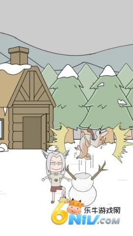 第四关:需在山上得到雪球,再在场景一获取屋顶的雪球和萝卜,组合放置在场景二的虚线圆内完成。这一关开始引入多场景切换的概念,考验玩家的场景记忆力和道具管理能力。