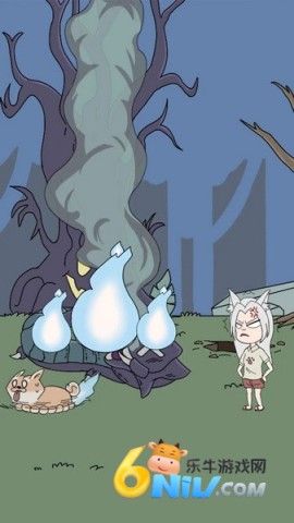 第十关:场景一中的南瓜头先点击,使其跳动到洞口,这时戳破南瓜拿到大龙,再放在吓人的树前找到男友。多步骤的解谜过程,需要玩家有耐心和条理性。