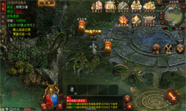 智能挂机系统可自动识别地图危险程度,在安全区域自动打怪,遭遇敌对玩家立即提醒。新增的"一键寻路"功能可智能规划最优路线,自动避开高级怪物区域。VIP玩家享有专属传送特权,可瞬间抵达任何已探索过的地图坐标。