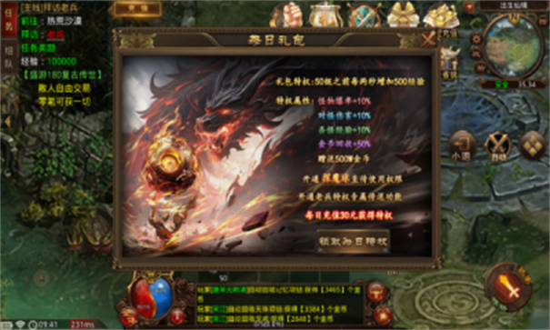 3.玩法系统包含昼夜交替的限时活动,如午夜出现的"魔龙降临"世界事件。沙巴克攻城战支持千人同屏,新增攻城器械和守城陷阱玩法。跨服天梯系统让玩家能与全服高手一决高下。
