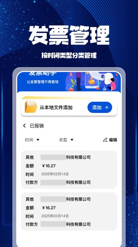2、在发票管理界面,用户可以对已添加的发票进行查看、编辑、分类等操作,系统提供多种筛选条件帮助快速定位目标发票。