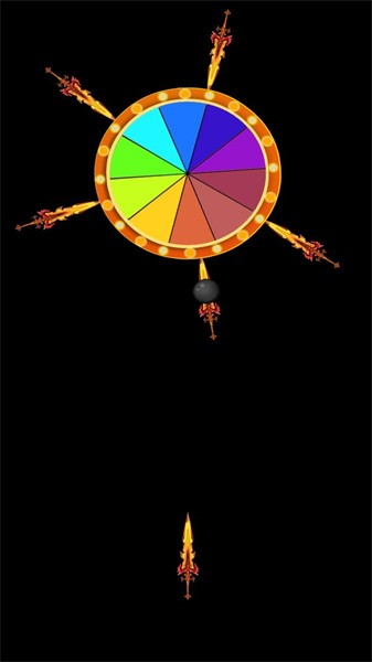 2、画风非常简约,操作起来很简单,在轮盘转动的时候只需要快速点击屏幕放置针即可。轮盘的旋转速度会随着关卡提升而加快,玩家需要集中注意力,抓住最佳时机完成插针操作。