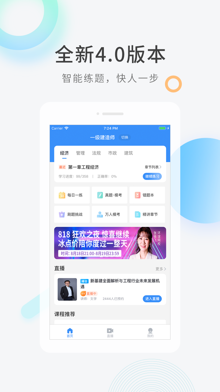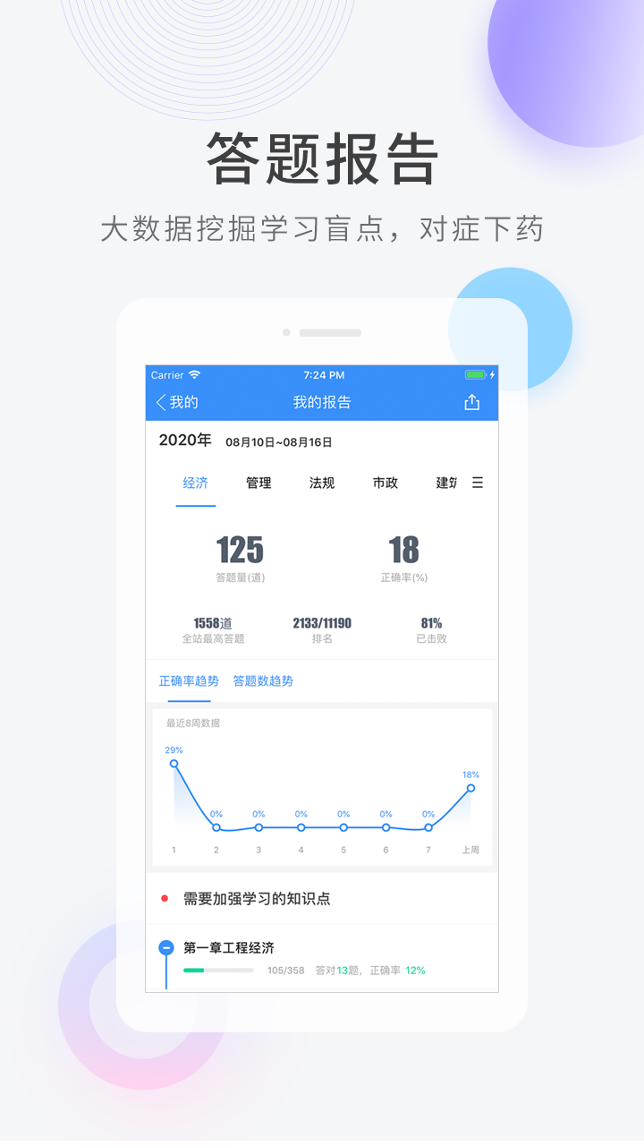 1、题库首页全新改版,优化视觉交互设计,新增学习进度可视化图表,操作体验更加流畅直观;