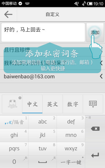 1."一字一键"的专利输入模式彻底革新了传统九宫格输入体验,通过智能预测和手势操作相结合,实现前所未有的输入速度。经过专业测试,其效率甚至超过语音输入,让您在任何场合都能保持高效沟通。