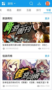 3、优化专题,;全新打造的专题页面采用瀑布流布局,增加视频评测和玩家实况内容。专题支持收藏和分享,每周更新热门游戏合集、主题特辑等内容,为玩家提供更丰富的游戏资讯。