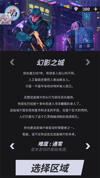 1、首先下载安装本游戏,进入游戏后玩家只需要点击屏幕下方的按钮即可进入游戏,进入游戏后玩家可以选择游戏的难度还有选择区域;游戏提供新手引导系统,通过简单易懂的教程帮助玩家快速上手。玩家可以在四大城区自由探索,每个区域都有独特的任务线和隐藏剧情等待发掘。