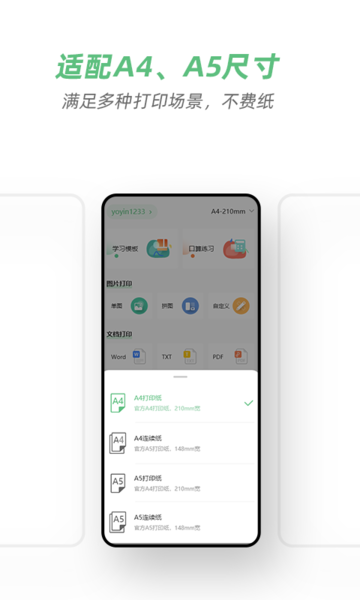 兼容A4、A5等多种规格打印纸,满足不同场景下的打印需求。智能识别纸张尺寸,自动调整打印内容比例,确保打印效果完美适配。特殊材质纸张也能轻松应对,为您提供更多打印选择。