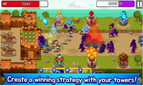 1.游戏的核心玩法是消灭所有入侵的敌人,确保城堡安全无虞。玩家需要在敌人前进的途中快速将其消灭,同时收集掉落的奖励以获得高分。随着关卡推进,敌人的数量和强度都会增加,考验玩家的反应速度和战术安排能力。合理利用地形和防御塔的搭配是制胜关键。
