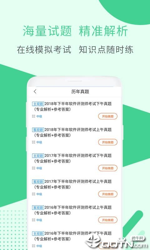 软件评测师考试助手是一款专为备考软件评测师资格认证的考生量身打造的学习应用。这款软件整合了海量优质学习资源,包括历年真题、模拟试题、高频考点等丰富题库,帮助考生系统性地掌握考试知识点。通过智能化的学习系统,软件能够根据用户的学习进度和薄弱环节,智能推荐针对性练习题目,实现个性化学习。无论是利用碎片时间刷题,还是系统性地进行模拟考试,这款软件都能为考生提供全方位的备考支持,让备考过程更加高效便捷。