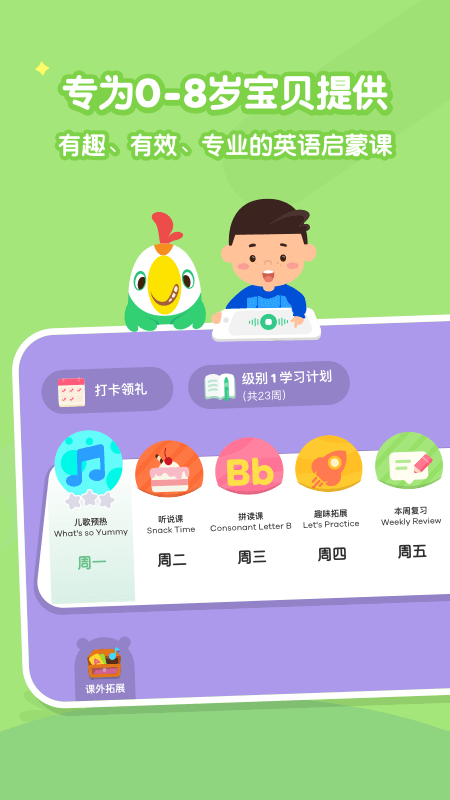 4、跟踪工具:智能学习跟踪系统不仅记录学习进度,还能根据孩子的掌握情况智能调整学习计划,确保每天15分钟的英语启蒙学习既高效又有趣,逐步培养孩子的自主学习能力。