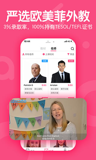 1、独创的"三师"教学模式:外教主讲+中教辅导+AI陪练,全方位保障学习效果。中教负责课后答疑和进度跟踪,AI系统提供24小时口语练习。