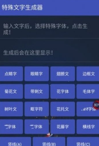 1、采用三步极简操作流程:输入文字-选择字体-自动生成复制,新手也能10秒上手使用。2、创新性推出单字ID生成模式,通过特殊符号组合确保名称唯一性,让玩家在好友列表中脱颖而出。3、特别强化社交属性,提供50+种聊天特效字体,包括动态流光字、3D立体字等高端样式。4、收录全球热门特殊文字库,涵盖点金字、毛体字等28种专业字体,每周更新流行样式。5、智能数据库实时同步游戏ID库,0.5秒内完成重名检测,准确率高达99.9%。