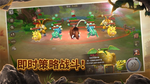 2、采用清新可爱的卡通画风,各种恐龙形象设计生动有趣,多样化的场景刻画细致入微,为玩家带来视觉享受;